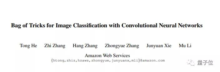 这个成果来自于亚马逊近期发表的一篇论文《Bag of Tricks for Image Classification with Convolutional Neural Networks》,作者为李沐带领的AWS研究团队。