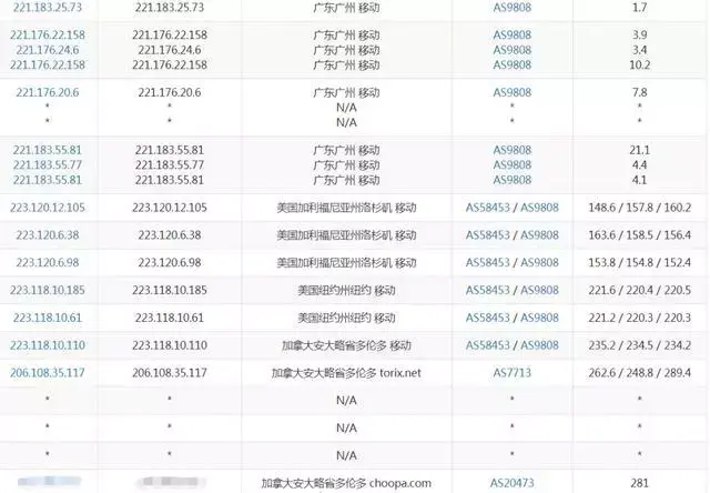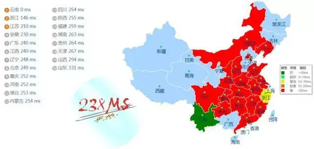 国内下载速度差别巨大啊,快的上百M慢的七八M,不同测试点结果差的太狠了。再看下ping值吧: