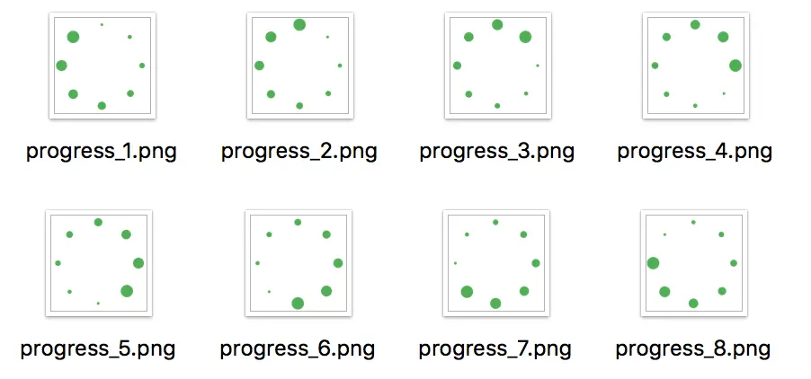 我们看到是一个持续旋转加载的效果,但这其实是8张静态图片通过逐帧动画实现的。