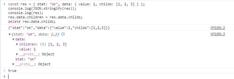 console.log(JSON.stringify(res)); // { stat: 'ok', data: { value: 1, children: [1, 2, 3] } }