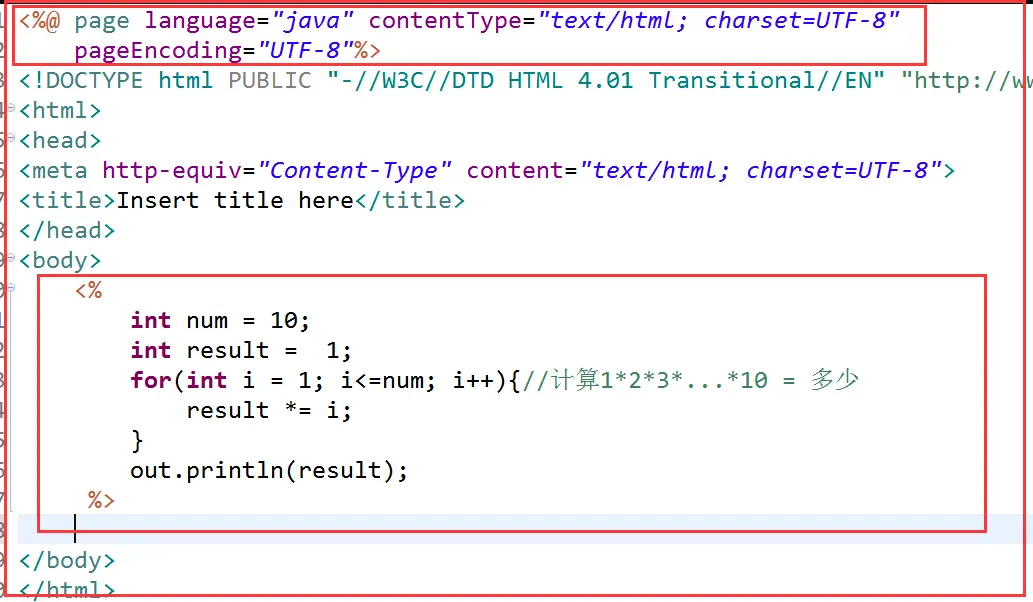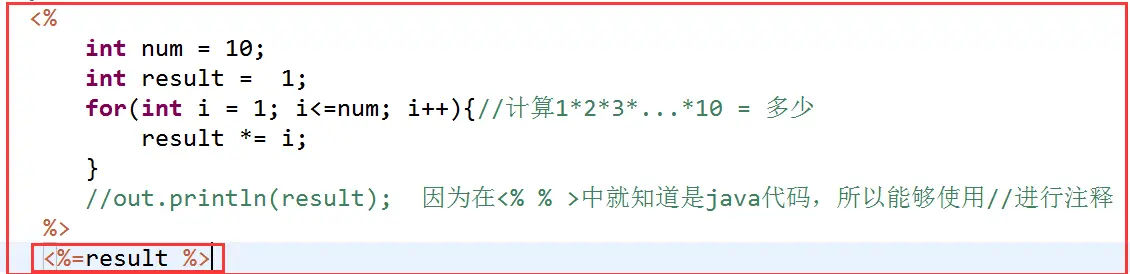 - 使用<% 编写java代码 %>,中间java代码必须遵循Java语法