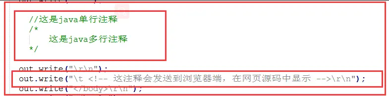 <%-- --%>:jsp注释 <!-- -->:这个注释,会发送到浏览器端的源码中显示 注释分别在servlet中如何显示: