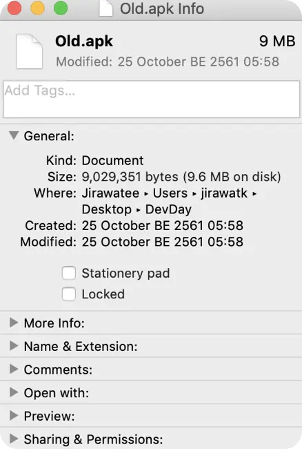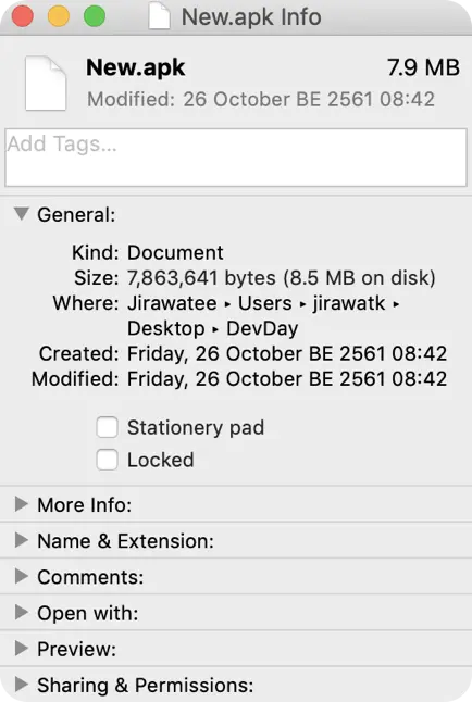 APK 的大小将会影响 app 的加载速度、内存占用以及电量消耗。我想大多数人都知道,APK 大小是用户参与度的重要因素。让我们来看看当前在 LINE MAN Driver 中 app 的大小。
