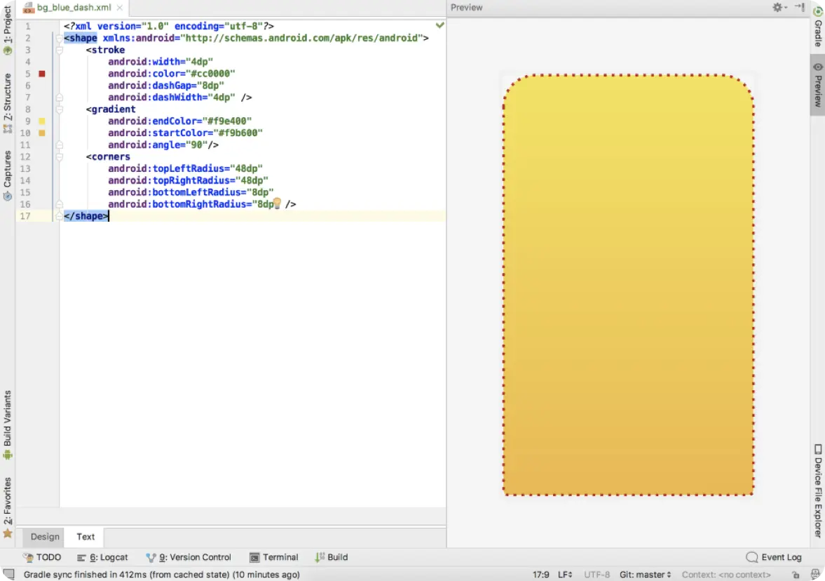 有时候,我看到开发者使用Bitmap的渐变背景或者圆角图。实际上,bitmap图比 Android Studio 提供的Shape Drawable更大,因为在Shape Drawable中,你可以以xml的格式绘制矩形、椭圆、圆、圆角和其他。
