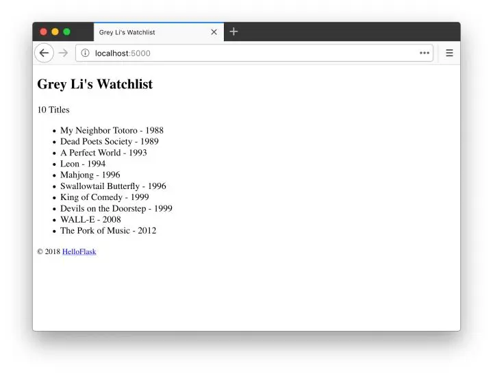<small>© 2018 <a href="http://helloflask.com/tutorial">HelloFlask</a></small>