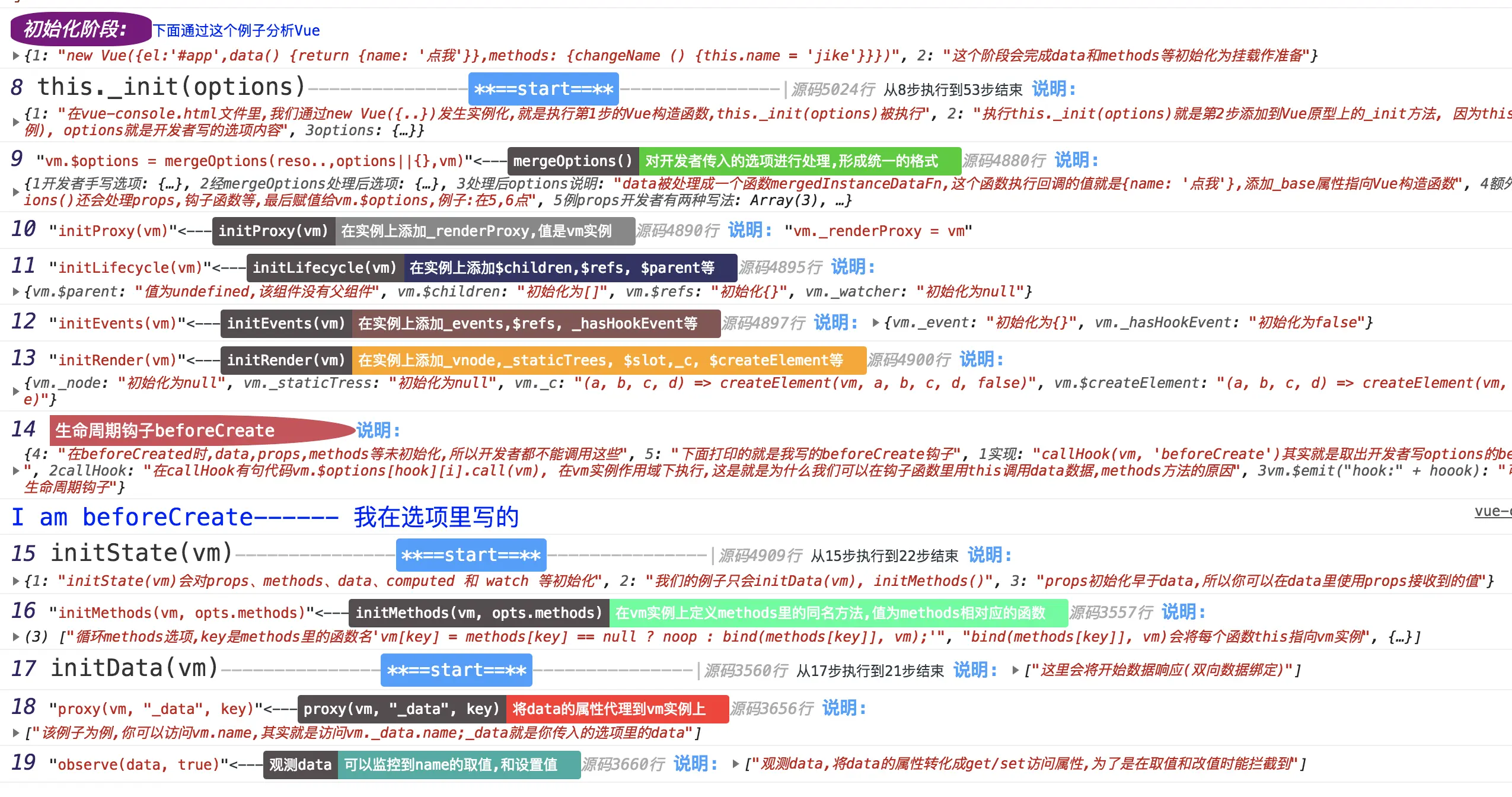 本文通过console.log的一些特性,结合vue.js的源码,通过一个简单的例子,让你了解Vue的各个过程的变化.