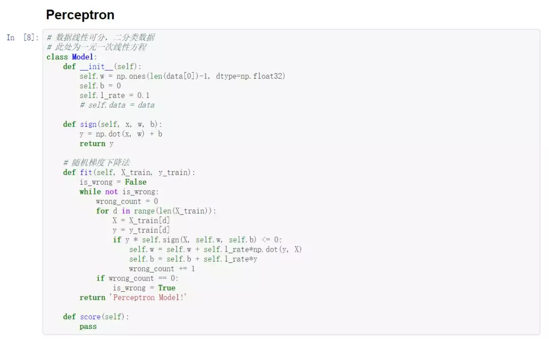 《统计学习方法》官方没有提供代码实现,但是网上有许多机器学习爱好者尝试对每一章的内容进行了代码实现。作者在 GitHub 网站搜集了一些代码进行整理,并作了一定的修改,使用 Python3.6 实现了第 1-11 章的课程代码。