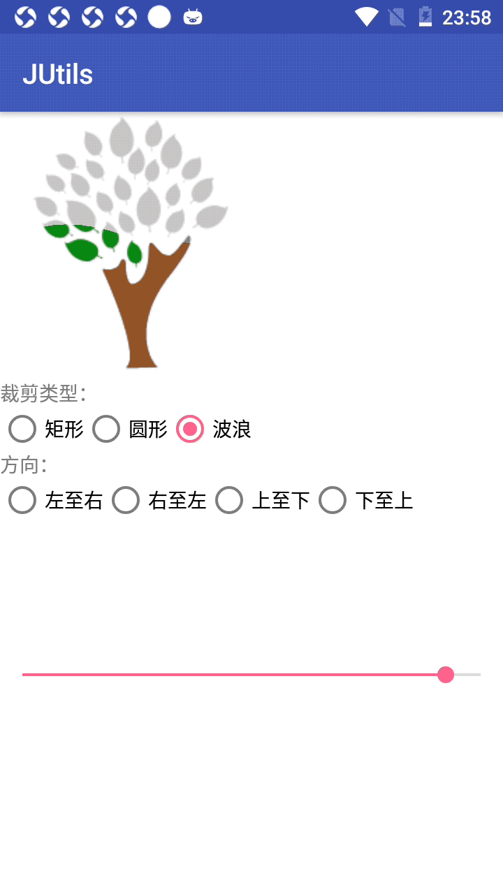 进度与裁剪的范围成反比,具体如何控制要根据裁剪类型进行设置。