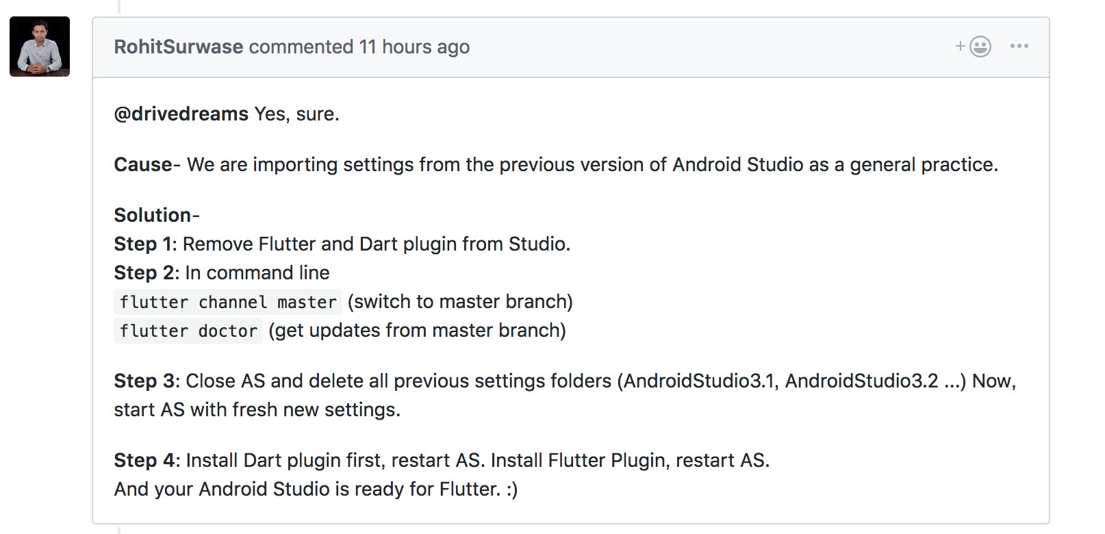 我运行了两次这个命令。第一次发现存在没有安装Flutter插件旧的AS版本,我将其移除。再次运行获得到以下信息: