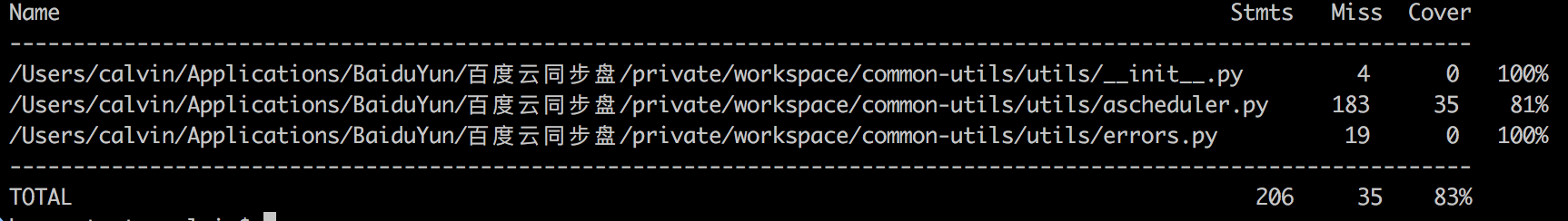 我们看到上面的测试用例报告中,有很多测试用例模块自身的覆盖率,其实我们只想看功能模块的测试覆盖率情况,可以执行下面的命令:
