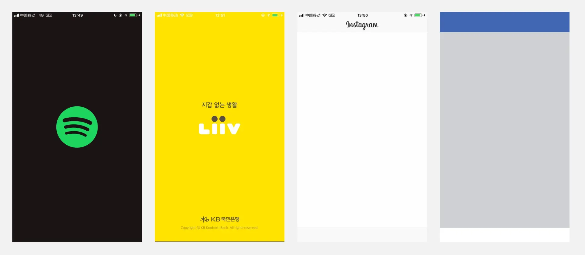 海外主流产品会将启动页用于品牌展示,而右边两个 Facebook 家产品都严格恪守着 HIG 规范