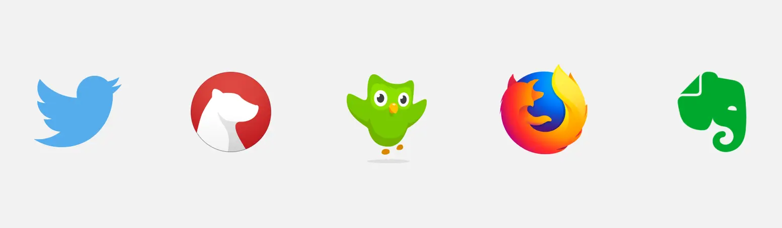 而欧美其实也并不像上图中所表达出来的尽用图形,也会有西文单词(比如诸多奢侈品牌、可口可乐、乐高等)或动物形象(比如 Twitter、Evernote等)作为标志, 不过最终都会把这些形象图形化,这也正说明这些国家和地区对不同形式的表达接受度更高。