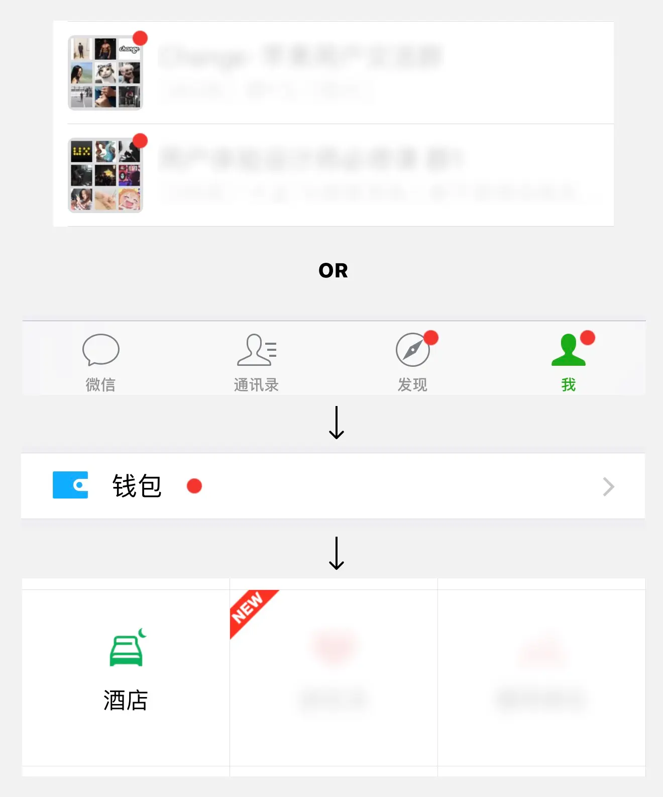 相信每个中文互联网的用户对 App 里面的小红点都不会陌生,小红点在国内很多应用中承载着可能与用户关联不大,甚至伴随推送出现的场景,对用户的使用从某些意义上来说是一种打扰。而需要说明一下的是,我们在这里说到的小红点不是 App icon 上的带数字的通知数,而是界面中的一个个小红点,以微信为例,从功能角度来讲,小红点通常被用于提示不重要的新消息以及面包屑引导(引导用户使用指定功能)。而微信已经是产品设计上比较克制的 App 了,你通常不难辨别小红点的意图,但是在其他很多产品中,红点已经被滥用了,大多带有推广以及产品功能曝光的指向性。
