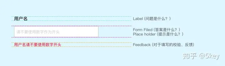 如果我们将表单问题还原成日常对话,这里则是提出问题、给出回答、系统再给予反馈,这就是表单的最小的一个单元,我们就先从这里开始,将表单的基础组件搞清楚。