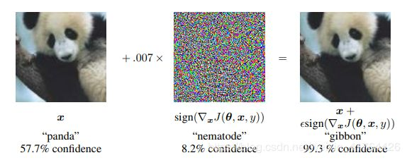 当然可以看到,如式(1)中所示,我们可以很明显的看到,其实如何快速求解这个扰动“r”是个问题,因此之后就有工作专门针对这个问题进行了探索,给出了如下方法,FGSM: