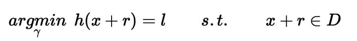 看到如上公式,其中x是数据样本的特征,l是数据样本通过函数h(x)预测的结果,l就是预测的结果。我们的数据样本通过模型的预测结果可能是k,但是我们希望通过尽量小的扰动r,最后通过模型预测的结果是l(然而x的分类目标并不是l)。目标很明确。