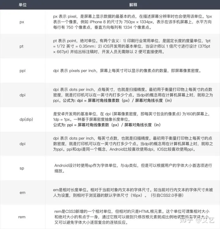 2. 附上各类单位解释以及单位之间的关系