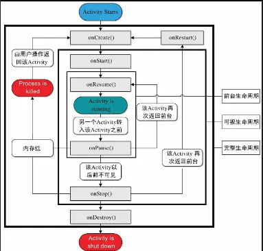 经典例子:若Activity被另一个透明或者Dialog样式的Activity覆盖,尽管对用户它仍然部分或全部可见,但它已经失去了焦点,故不可与用户交互,此时被覆盖的Activity是处于onPause状态。onStop():在Activity从Actived状态转换到Stopped状态时被调用。一般在这里保存Activity的状态信息。Activity被另外一个Activity完全覆盖、失去焦点并不可见