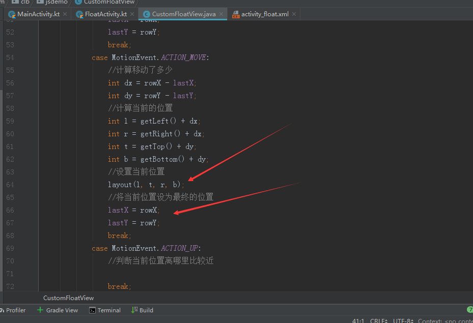 2.注意在拖拽结束后注意重新设置按钮的坐标,不然按钮会回到最初的位置(如果需求就是要回到最初的位置,那就不用在处理了)