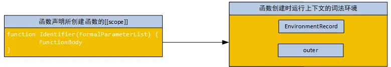 从函数创建过程可以看出,函数一出生(创建),就带了一个[[scope]]属性,这个属性存放着函数创建时的词法环境(Lexical Enviroment)。是函数"先天"的作用域,是静态的,是在函数创建是就被保存在函数体内。