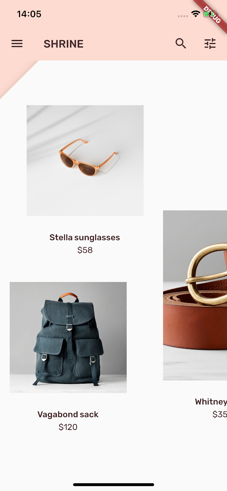 flutter packages get会安装你在pubspec.yaml文件中列出的依赖项。 你可以编写你自己的包以在 Pub 上发布。本系列教程使用shrine_images自定义包来显示你将在 MDC-102 看到的产品图像。