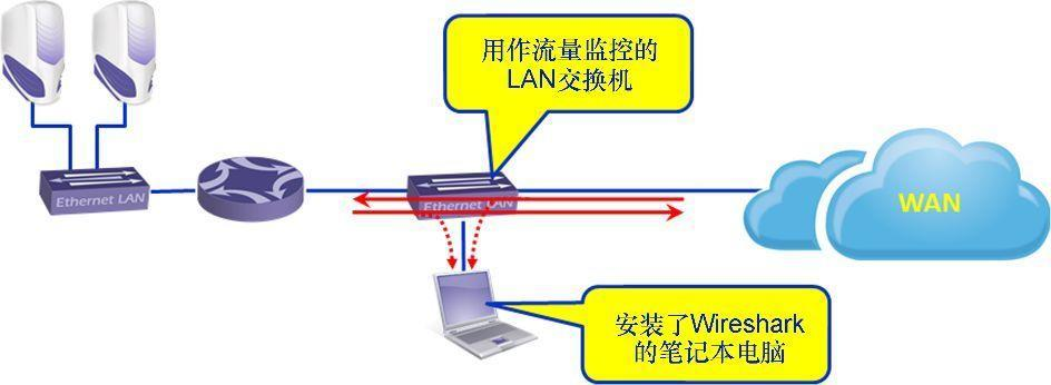 可用Wireshark监控LAN端口、WAN端口、服务器/路由器端口或接入网络的任何其他设备收发的流量。