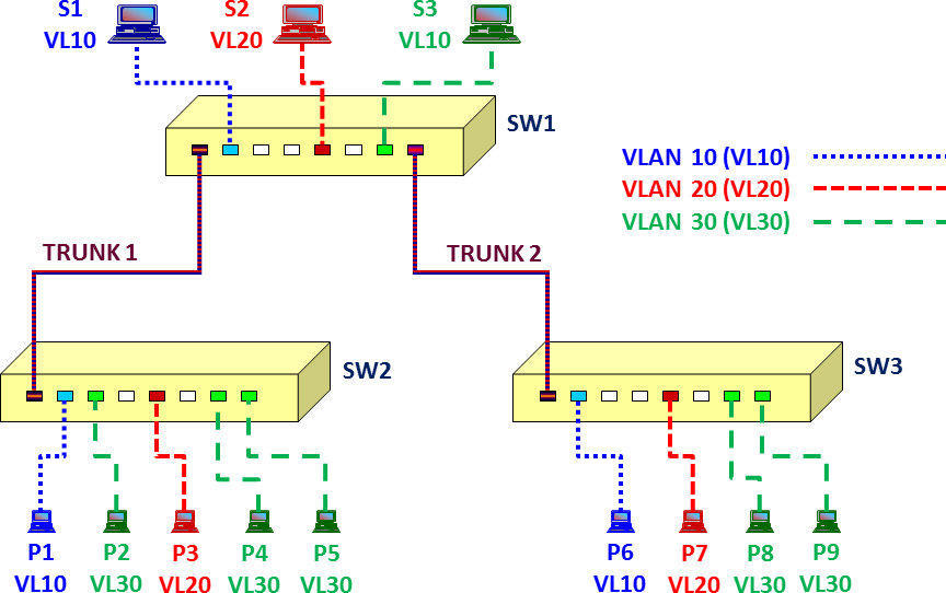 在图1.8所示的交换机上激活了端口镜像功能,对VLAN 30的流量实施监控。对于服务器S4向S2发送的数据包,当其(从连接S4的交换机端口)流入VLAN 30时,Wireshark主机会收取一次;当其从(从连接S2的交换机端口)流出VLAN 30时,Wireshark主机会再收取一次。这么一来,便抓到了重复的流量。