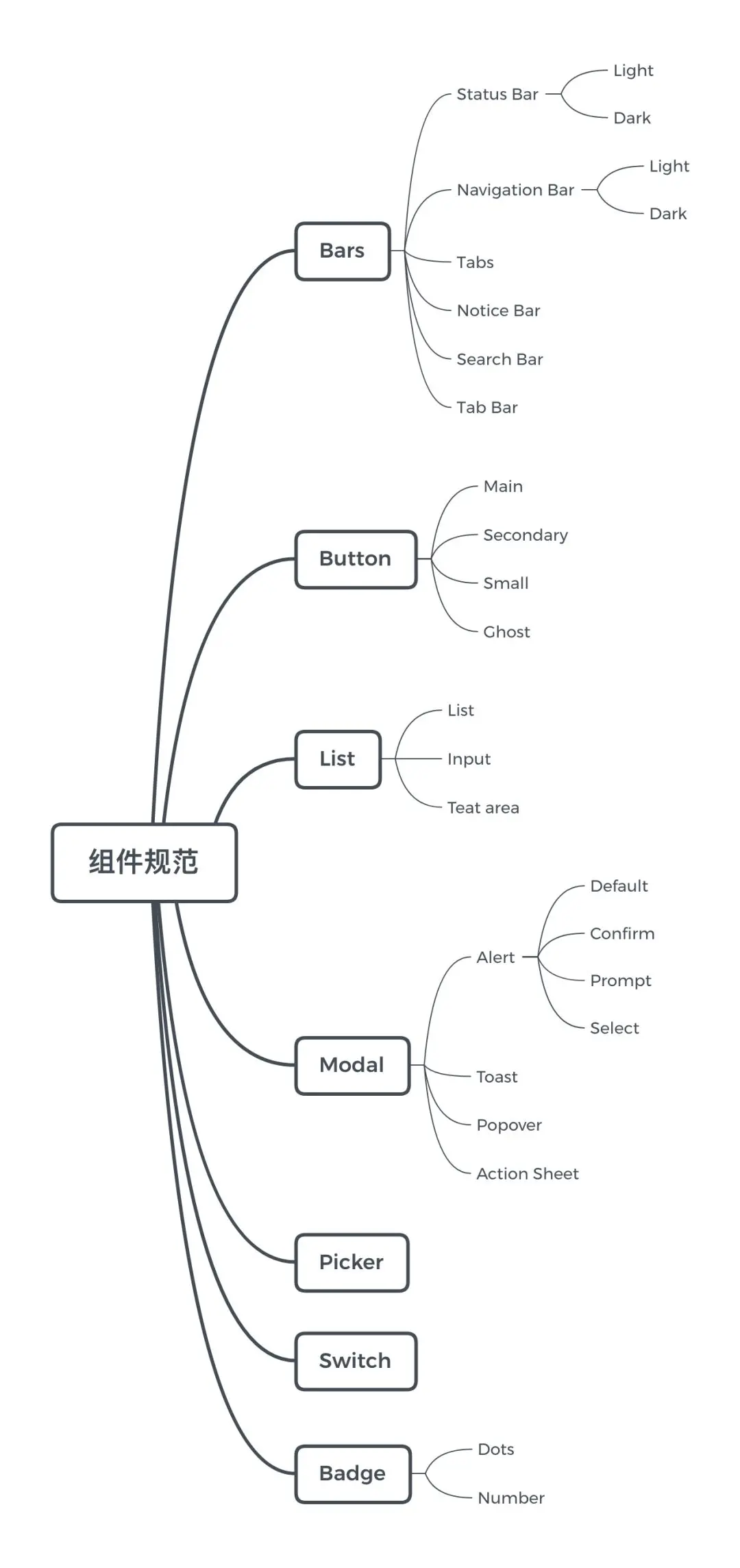 由于篇幅有限,本文只介绍通用类组件,解构并归类后,得出以下内容(设计师可以根据项目情况自行补充)