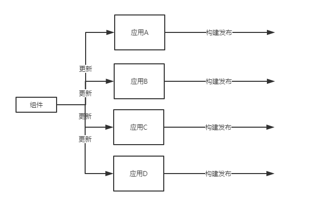 现在采用electron构建桌面应用,加上私有模块组件化开发的模式,这种情况下如果一个组件应用于多个项目上,那么更新一个组件后,引用这个组件库的项目就都需要更新它,然后自己构建再发布,用户再去更新,流程应该是这样: