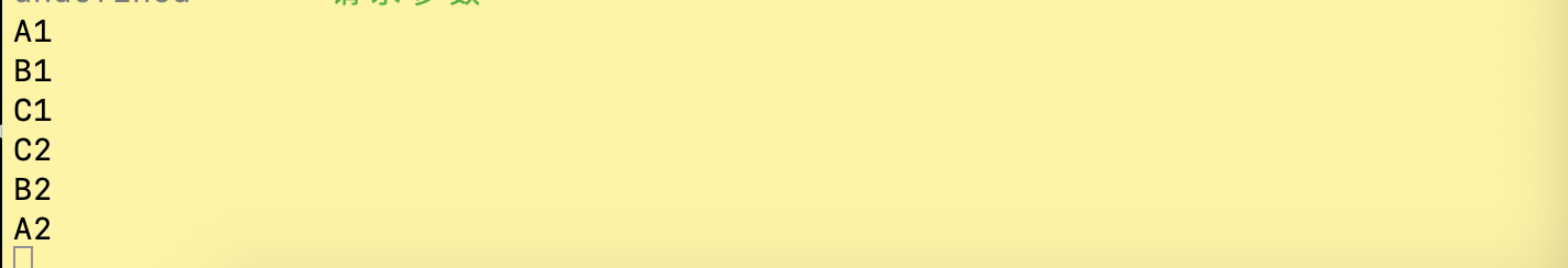 从日志我们可以看出,每次next()之后,都会按照顺序依次调用下中间件函数,然后按照执行顺序依次打印A1,B1,C1,此时中间件已经调用完成,再依次打印C2,B2,A2。