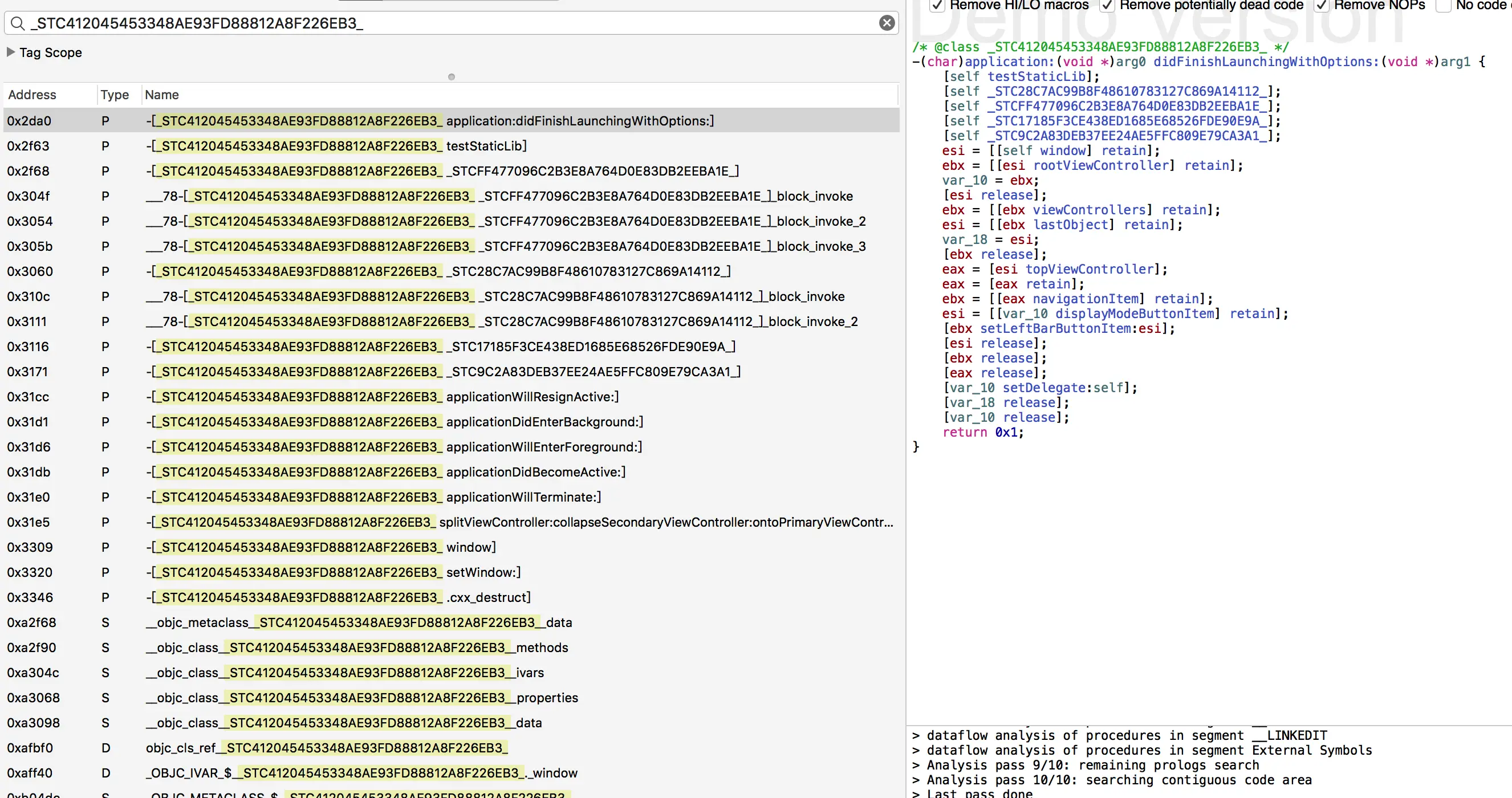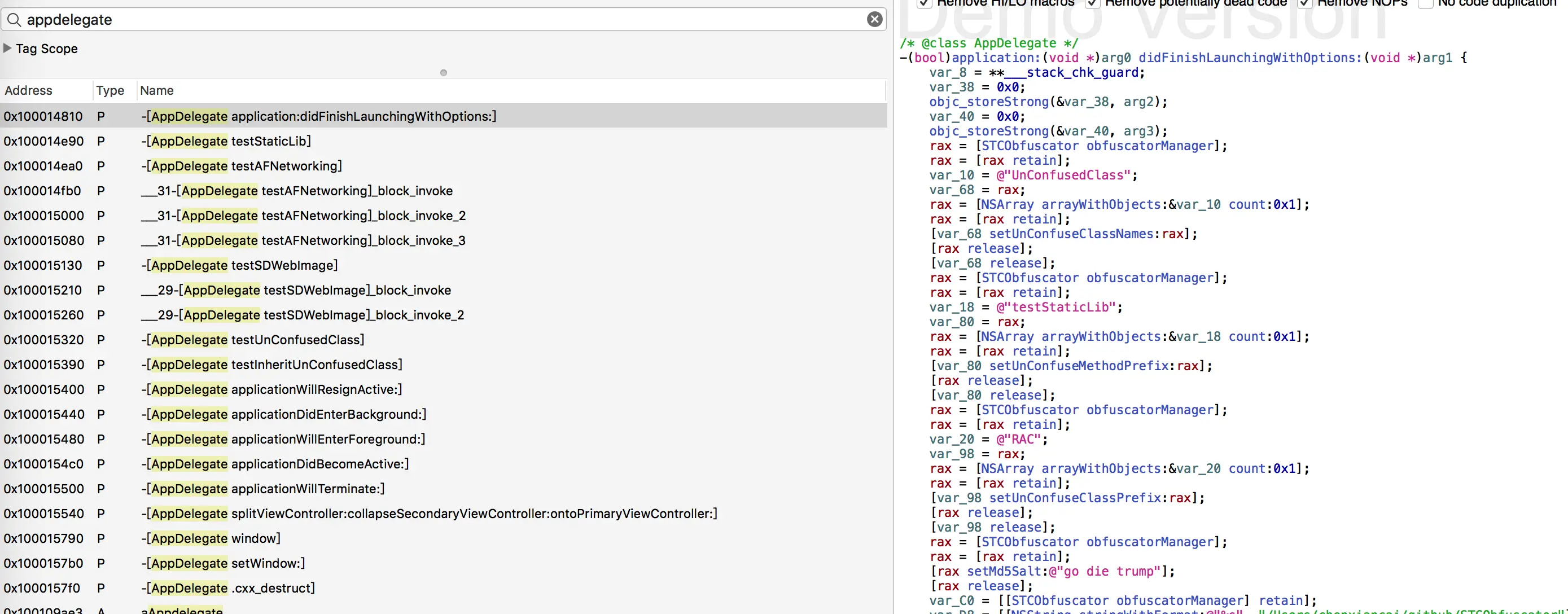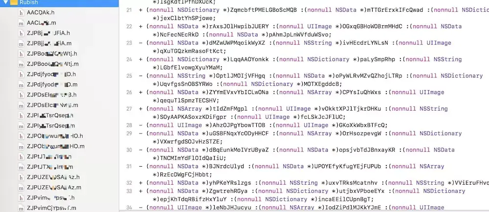 注:对于大量采用runtime的库比如RAC,RN,尽量不混淆,另外那些采用反射机制映射的类、字段和方法依赖接口的,也不要混淆,这些情况一般自动化的工具很难解决,还是需要手工处理过滤下,比如那些暴露给RN的属性,一旦混淆,RN就崩溃了。
