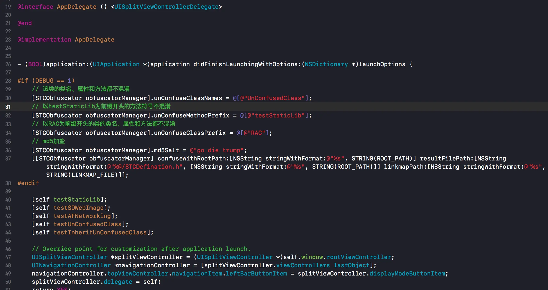 把下面的代码加入到Appdelegate didFinishLaunchingWithOptions方法里,#import "STCObfuscator.h"