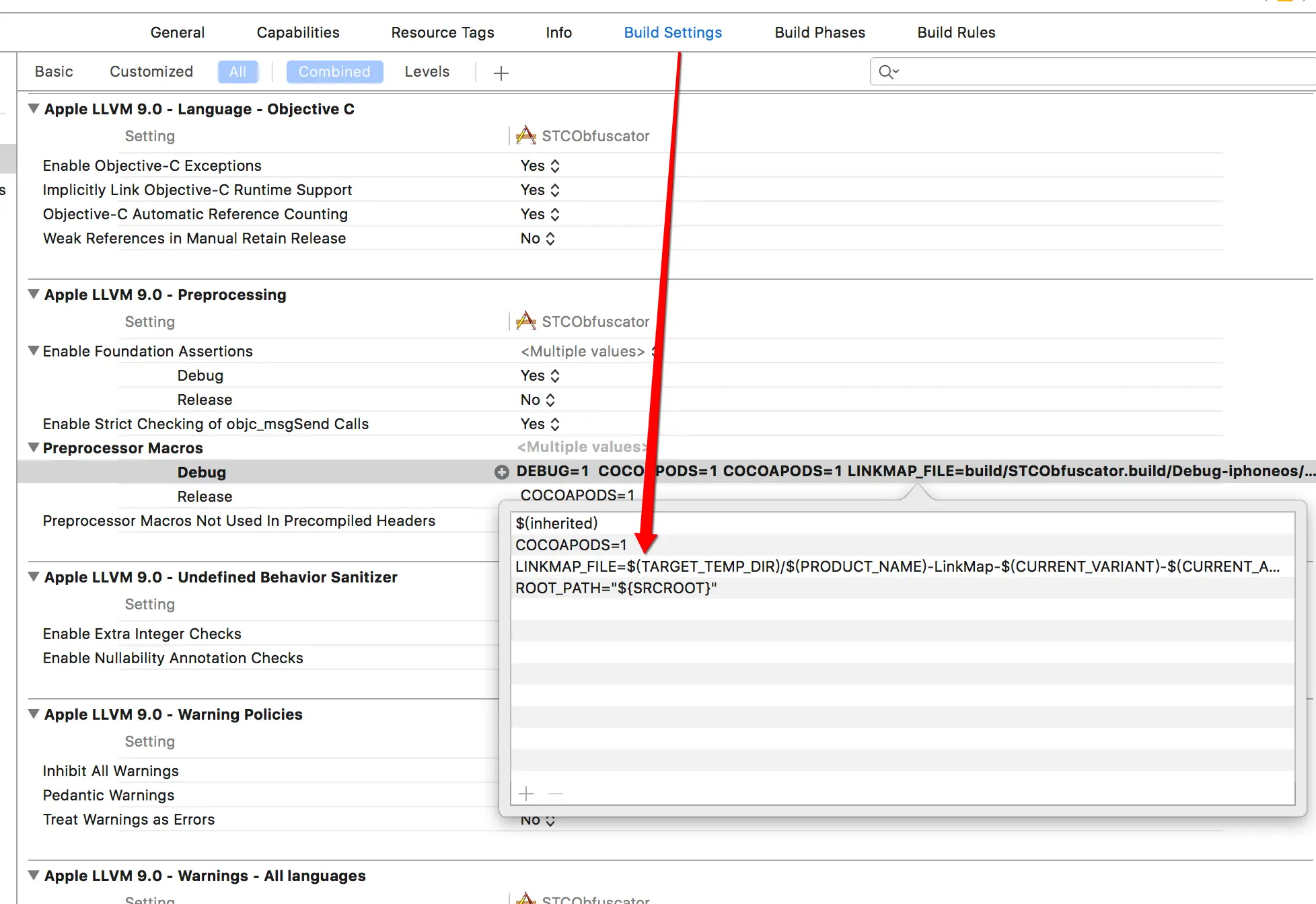 LINKMAP_FILE=$(TARGET_TEMP_DIR)/$(PRODUCT_NAME)-LinkMap-$(CURRENT_VARIANT)-$(CURRENT_ARCH).txt和ROOT_PATH="${SRCROOT}"