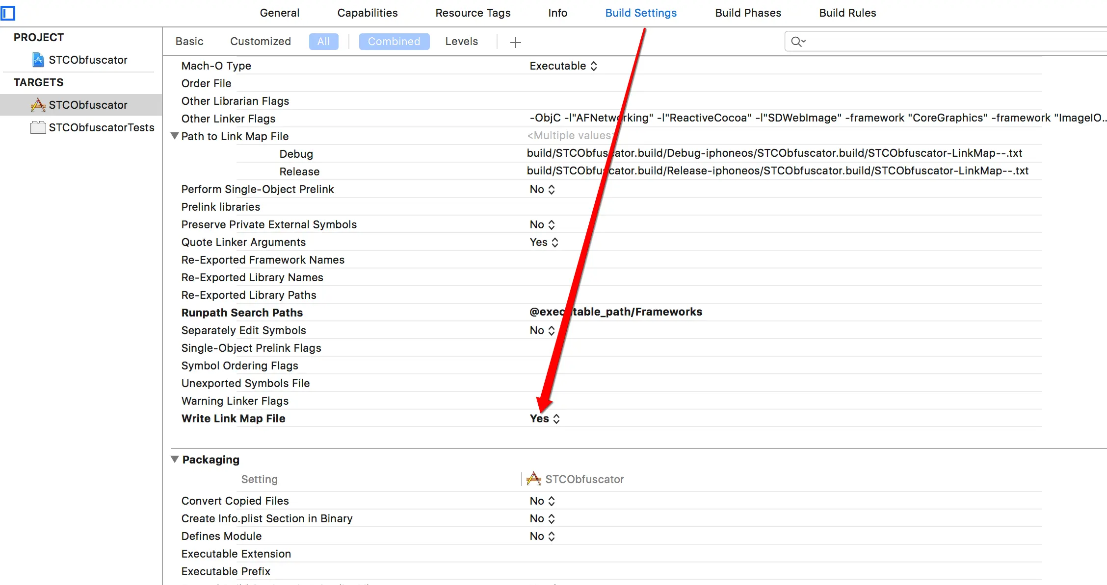 在 Build Settings 开启Write Link Map File, 设置成 YES。