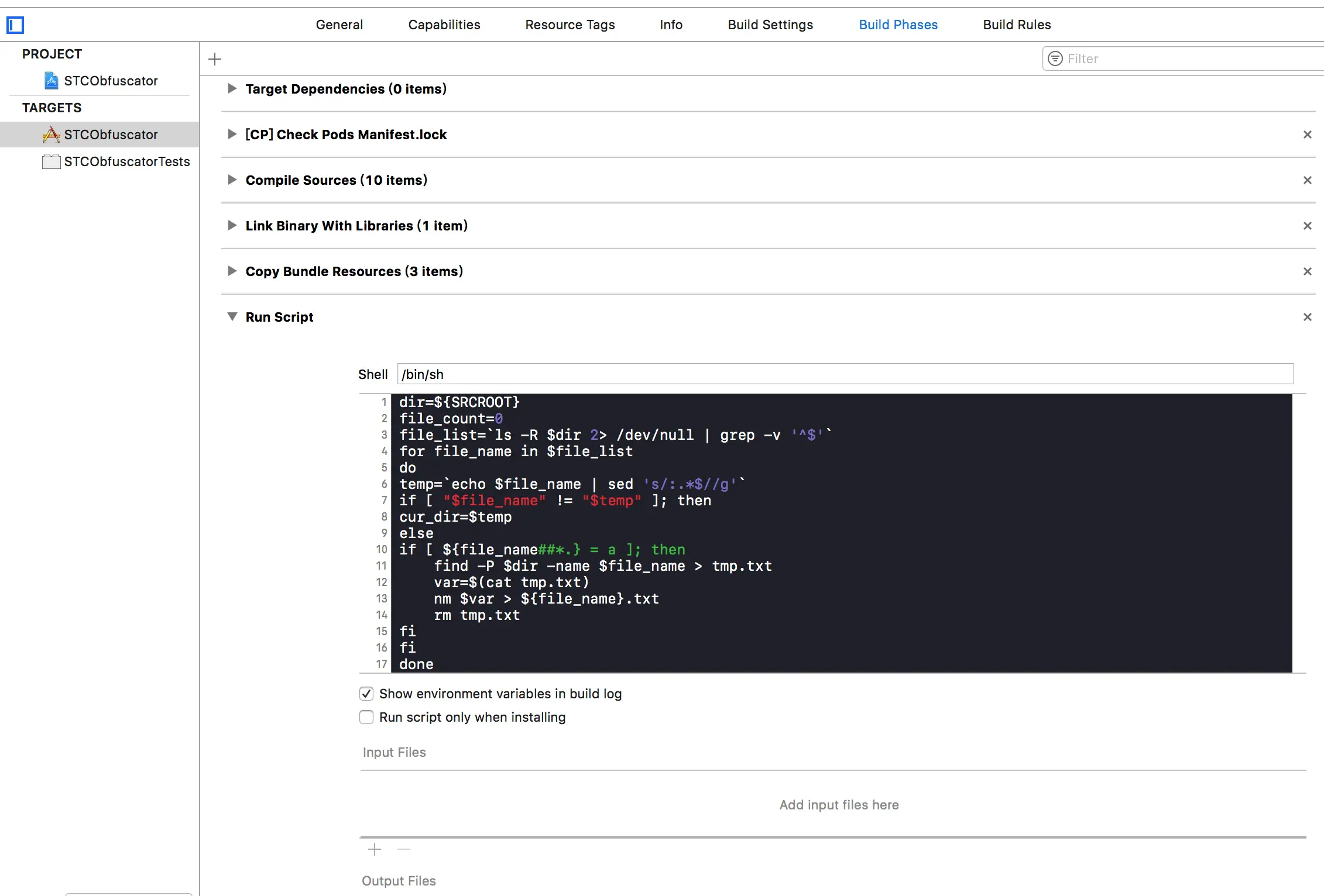 [[STCObfuscator obfuscatorManager] confuseWithRootPath:[NSString stringWithFormat:@"%s", STRING(ROOT_PATH)] resultFilePath:[NSString stringWithFormat:@"%@/STCDefination.h", [NSString stringWithFormat:@"%s", STRING(ROOT_PATH)]] linkmapPath:[NSString stringWithFormat:@"%s", STRING(LINKMAP_FILE)]];