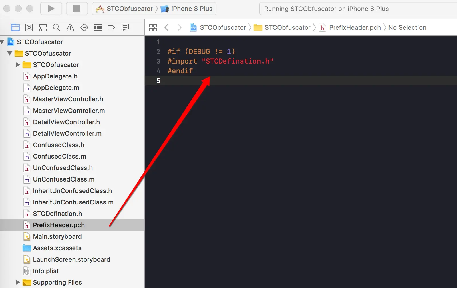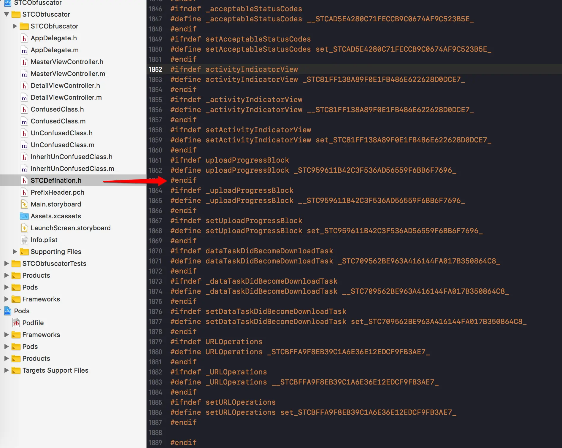 在DEBUG环境下用模拟器运行工程,在STCDefination.h头文件中生成混淆的宏。