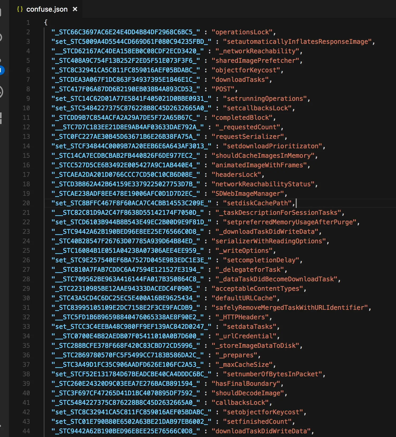 所有的混淆符号会保留在工程目录下的confuse.json。