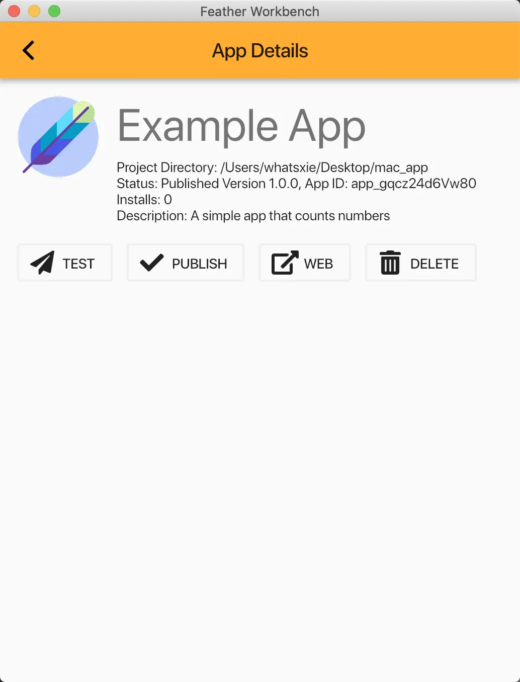 点击 PUBLISH 设置应用描述和截图,发布应用到 Feather 商店。
