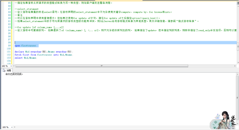 --如果指定了forward_only而没有指定static、keyset和dynamic关键字,则游标作为dynamic游标进行操作。