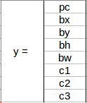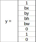 bh是边界框的高度与相应单元网格的高度之比,在例子中约为0.9:bh=0.9,bw是边界框的宽度与网格单元的宽度之比,bw=0.5。此网格的y标签将为: