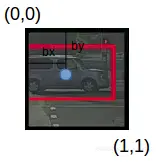 请注意,bx和by将始终介于0和1之间,因为中心点始终位于网格内,而在边界框的尺寸大于网格尺寸的情况下,bh和bw可以大于1。