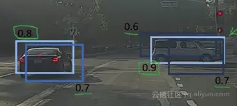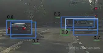 最后,使用IoU和非极大值抑制去除重叠框;
