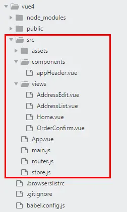 - “页面”库中新建了四个“页面”Home.vue(个人中心)、OrderConfirm.vue(订单确认)、AddressList.vue(地址列表)、AddressEdit.vue(地址编辑)。项目初始化时的“页面”About.vue删除。