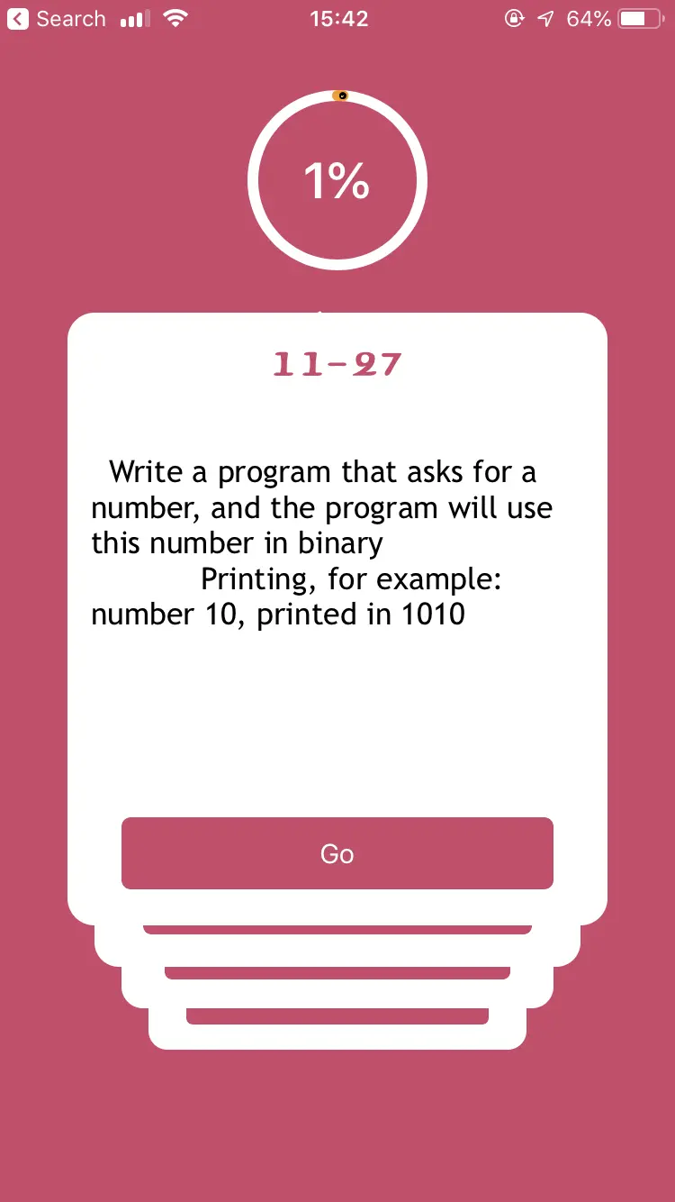 在一开始的时候,不需要用力过猛,因为确实,学习编程语法是挺无聊的,尤其这个时候也许对编程还没有感性的认识。很有可能所有好奇心在学习语法时就消耗殆尽。所以如果这个时候,利用碎片化时间,每天上下班途中,或者排队等候期间,拿出手机,练习一下,只要能保持节奏,每天做一点,很快就可以把这个拦路虎给干掉。