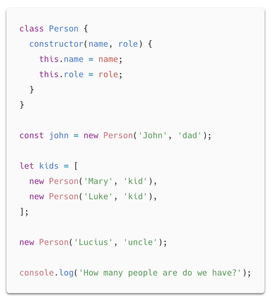 请注意,列表中创建的最后一个对象是不可用的:因为在代码执行后,对于它的引用并没有留存下来,现在我们只有 3 个 person 对象: