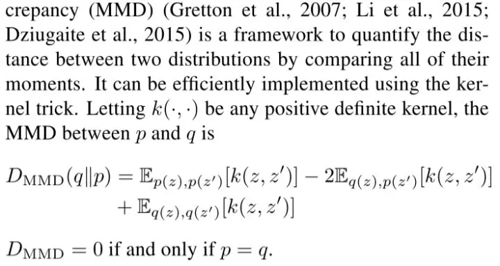 类似的例子是 Information Maximizing Variational Autoencoders 其中只用了 MMD 判断: