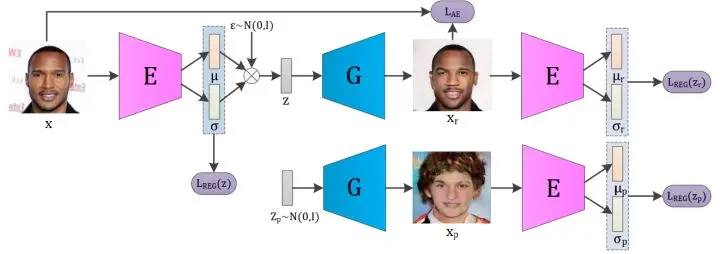 论文见Introspective Variational Autoencoders for Photographic Image Synthesis。通过修改 VAE 的 LOSS,在不引入新网络的情况下,用 E 网络承担了 GAN 中 D 网络的功能。