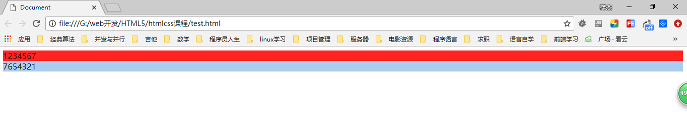 在html中有一些display默认为block的标签,例如 div,p,h1~hn,form,ul和li等等。如下例: