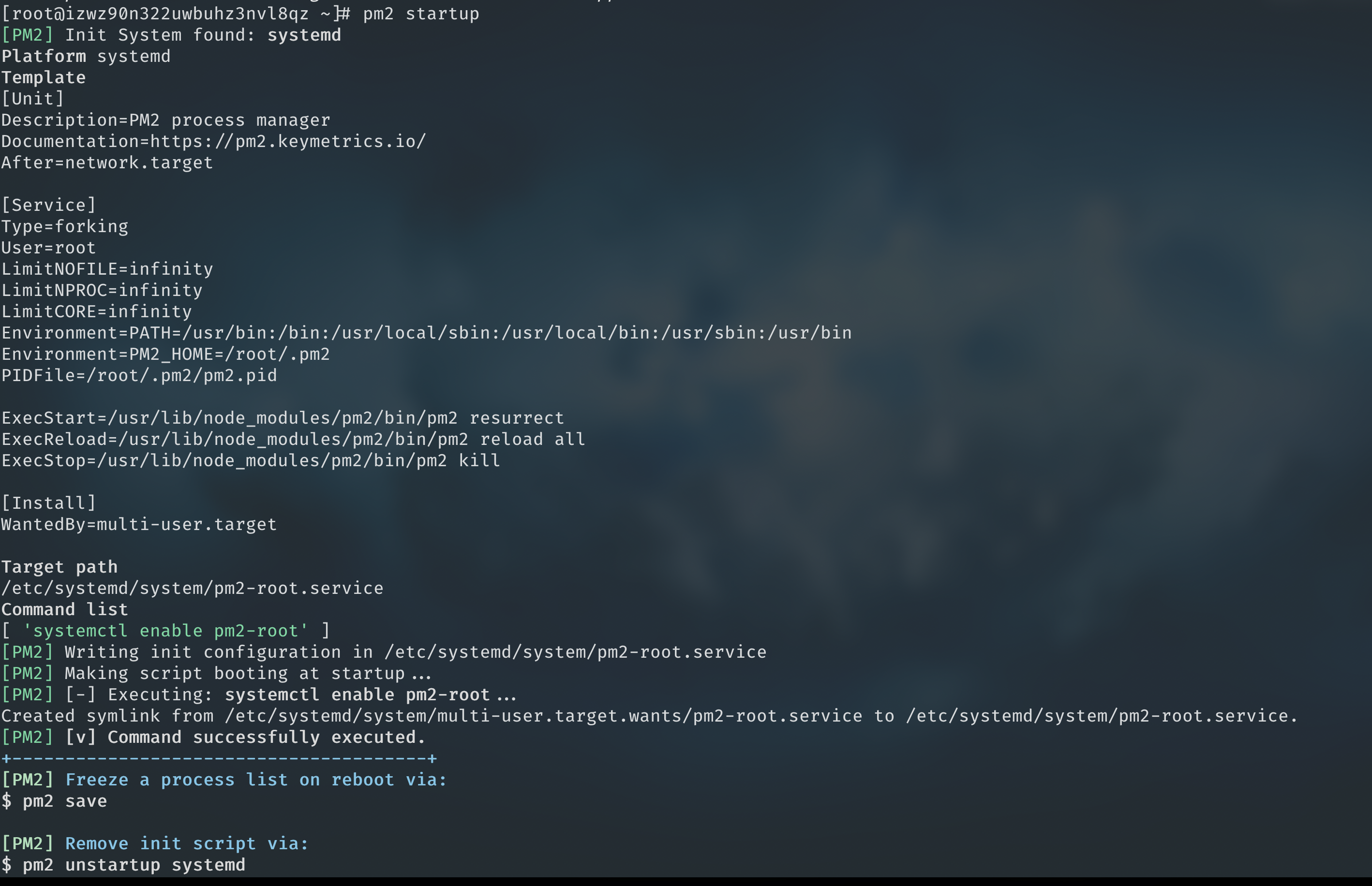 pm2 start [services]: 启动你的服务pm2 list: 看看服务是否正常运行