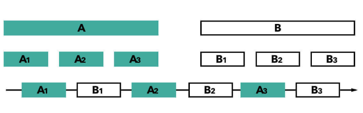 这里的重要细节是,任务不一定同时执行,但是它们可以划分为交错在一起的更小的任务。